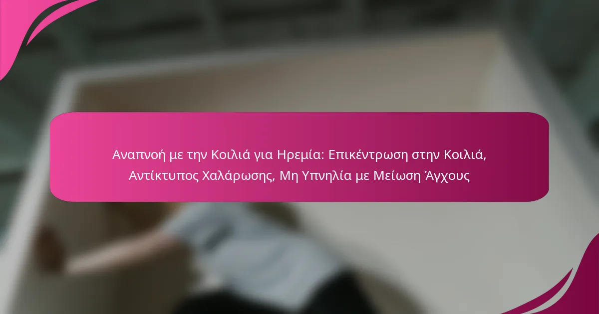 Η αναπνοή με την κοιλιά, ή διαφραγματική αναπνοή, είναι μια αποτελεσματική τεχνική για την προώθηση της χαλάρωσης και τη μείωση του άγχους χωρίς να προκαλεί υπνηλία. Εστιάζοντας σε βαθιές κοιλιακές αν...
