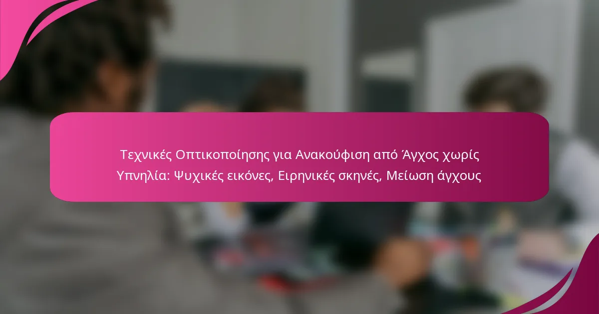 Οι τεχνικές οπτικοποίησης για την ανακούφιση από το άγχος χωρίς υπνηλία χρησιμοποιούν τη νοητική εικόνα για να προκαλέσουν ήρεμες σκηνές που βοηθούν στην ανακούφιση από το άγχος. Εμπλέκοντας το μυαλό ...