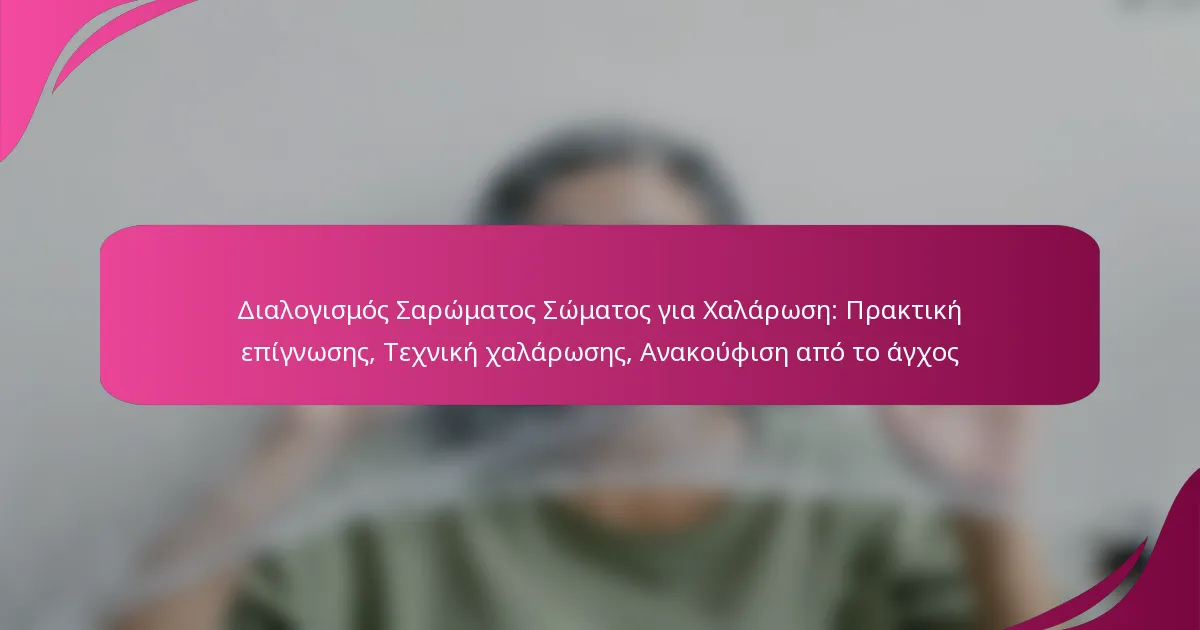 Ο διαλογισμός σάρωσης σώματος είναι μια ισχυρή τεχνική ενσυνειδητότητας που ενθαρρύνει τα άτομα να εστιάζουν στις σωματικές αισθήσεις σε όλο το σώμα τους, προάγοντας τη χαλάρωση και την ανακούφιση από...