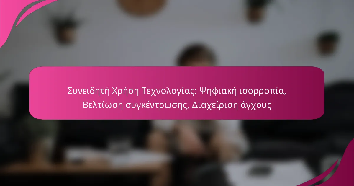 Η συνειδητή χρήση της τεχνολογίας ενθαρρύνει τη σκόπιμη εμπλοκή με τις ψηφιακές συσκευές για την ενίσχυση της ευημερίας και της παραγωγικότητας, ενώ μειώνει το άγχος. Με την καθορισμένη θέσπιση σαφών ...