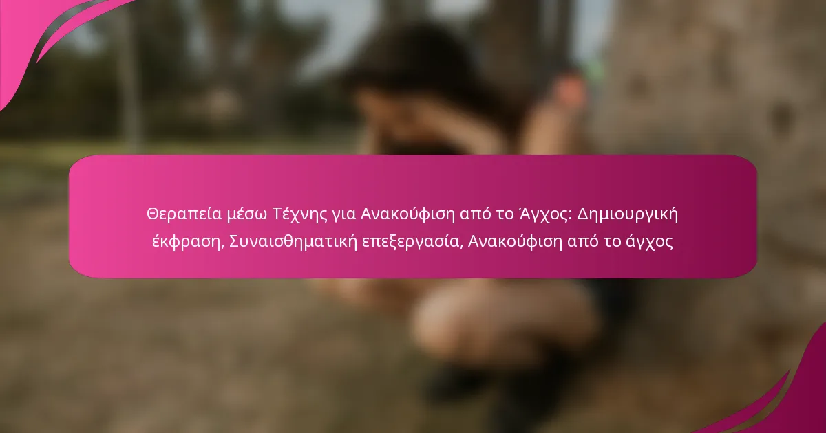 Η θεραπεία μέσω τέχνης είναι μια ισχυρή θεραπευτική προσέγγιση που χρησιμοποιεί τη δημιουργική έκφραση για να βοηθήσει τα άτομα να διαχειριστούν το άγχος και να επεξεργαστούν τα συναισθήματά τους. Μέσ...